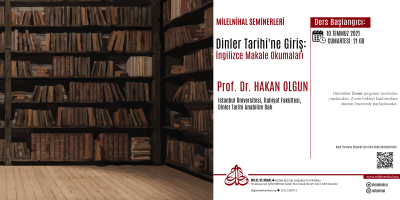 MilelNihal Seminerlerinde Prof. Dr. Hakan Olgun'un koordinatörlüğünde yürütülecek olan "Dinler Tarihi'ne Giriş: İngilizce Makale Okumaları" 10 Temmuz Cumartesi saat 21.00' da başlıyacaktır. Seminer iki hafta arayla 8 oturum sürecektir. Katılımcıların seminer öncesine gerekli ingilizce makaleleri okuyup gelmeleri beklenmektedir.